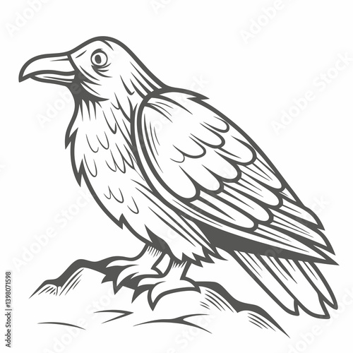 Naklejka premium Detailed Raven Illustration, Bird Perched
