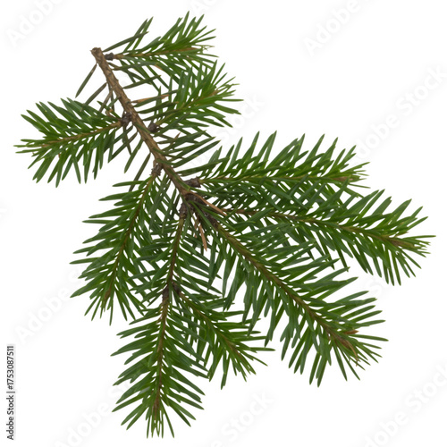 © Xero Squad, Naklejka premium Detailed realistic pine branch with green needles against a black void