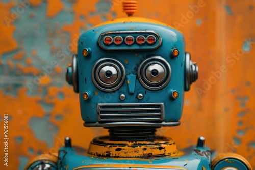 © nik_yurginson, Fototapeta premium Detailed robot model kit showcasing interchangeable components against a textured backdrop
