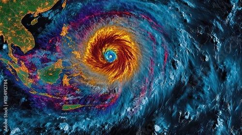 © Hardy, Obraz premium Detailed satellite image of a massive tropical cyclone near Thailand