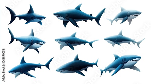 Fototapeta premium Detailed Shark Silhouettes Collection for Art and Design