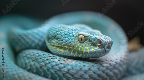 Fototapeta premium Detailed shot of a blue snake's head, perfect for nature and wildlife themes