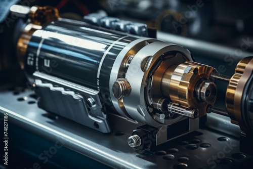 © aicandy, Fototapeta premium Detailed shot of a pneumatic cylinder amidst an array of industrial machinery and tools