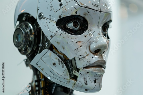 © anatolir, Fototapeta premium Detailed side view of a futuristic android's face, showcasing intricate artificial features