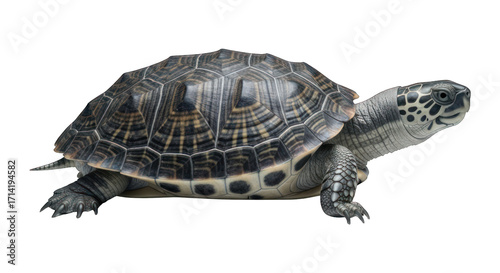 Obraz premium Detailed side-view of a turtle with patterned shell