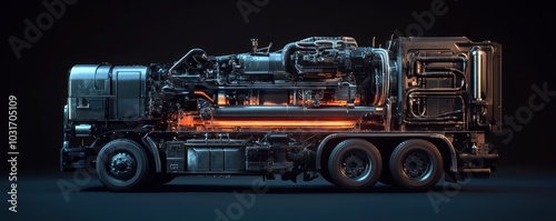 Fototapeta premium Detailed Side View of Futuristic Engine on Industrial Vehicle with Complex...
