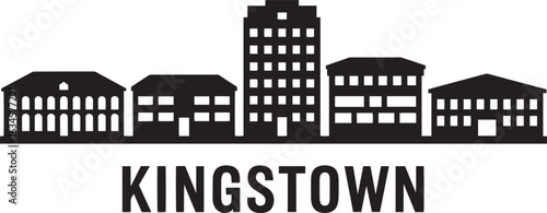 © Pappu0099, Obraz premium Detailed Silhouette of Kingstown Saint Vincent Skyline Vector Illustration with City Name Below
