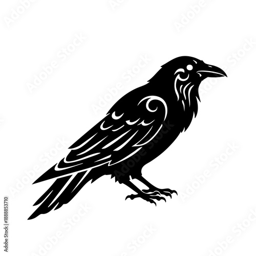 © Pixelora, Obraz premium Detailed Silhouette Raven Bird Design Ornamental Illustration Graphic Elements