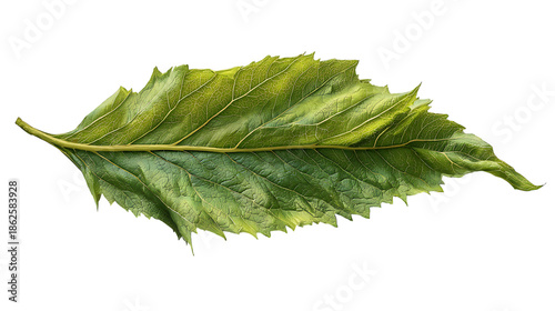 Fototapeta premium Detailed single green leaf with veins on transparent background, vibrant and...