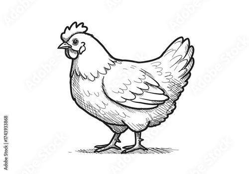 © AndrianR, Naklejka premium Detailed Sketch of a Chicken with Shading and Defined Feathers.