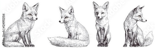 © Biggy, Fototapeta premium Detailed Sketch of Foxes in Different Poses and Angles for Art