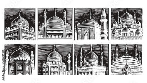 Fototapeta premium Detailed Sketches of Islamic Architecture in Vintage Style
