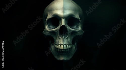 Fototapeta premium Detailed Skull Artwork in Dark Background Symbolizing Mortality and Mystery