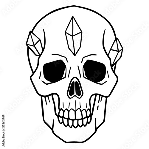 Fototapeta premium Detailed Skull Line Art with Geometric Crystal Decorations