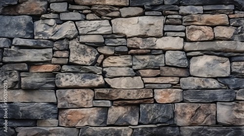 Fototapeta premium Detailed stone wall background featuring a blend of irregularly shaped stones with a natural, weathered look