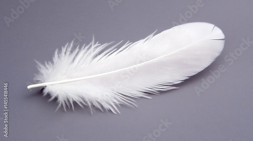 Obraz premium Detailed studio shot of a single white feather on neutral gray background