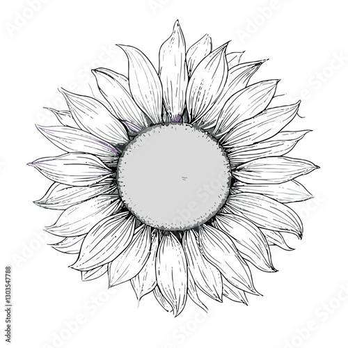 Fototapeta premium Detailed sunflower tattoo design featuring intricate petals and a textured center in black-and-white style