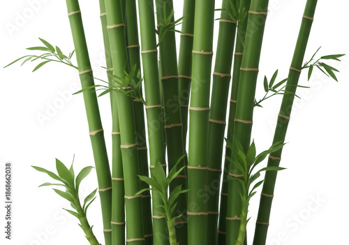 © Torikul, Fototapeta premium Detailed texture of vibrant green bamboo stalks on transparent background