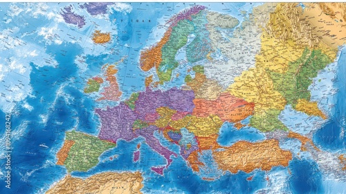 Fototapeta premium Detailed Topographical Map Of European Countries And Seas