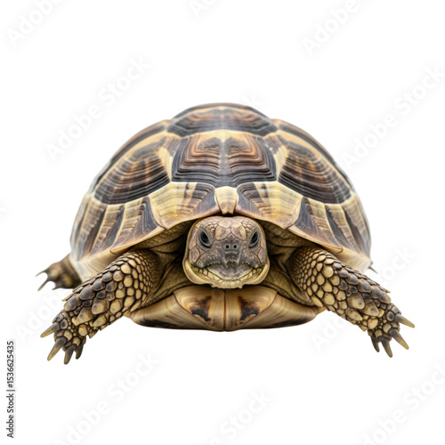 Fototapeta premium Detailed tortoise portrait exhibiting intricate shell patterns against a dark...