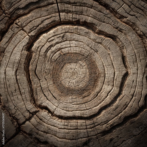 © Rocks Stock, Fototapeta premium Detailed Tree Rings: Close-Up of a Cut Tree Trunk with Growth Rings