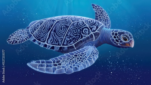 © Ariestia, Obraz premium Detailed underwater view of a sea turtle adorned with intricate patterns.