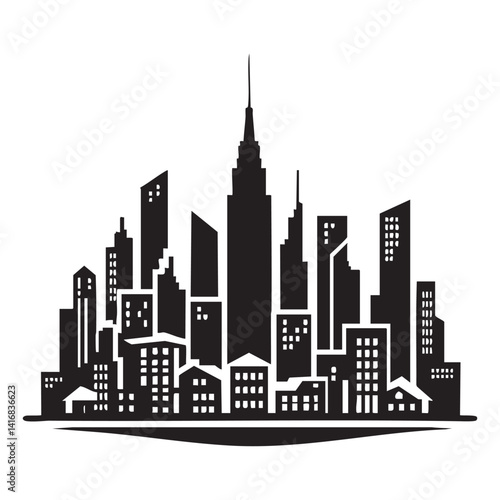 Obraz premium Detailed Urban Cityscape Silhouette Skyline Illustration Vector Graphic