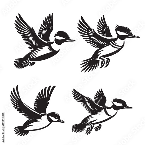 © Furqan, Fototapeta premium Detailed Vector of the Bufflehead Silhouette Isolated on White Background"