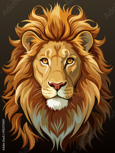 Fototapeta premium Detailed vector portrait of a majestic lion with a flowing mane and sharp...