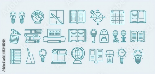 © Yasi Lens, Fototapeta premium Detailed vector school icons for business logos on pastel background.