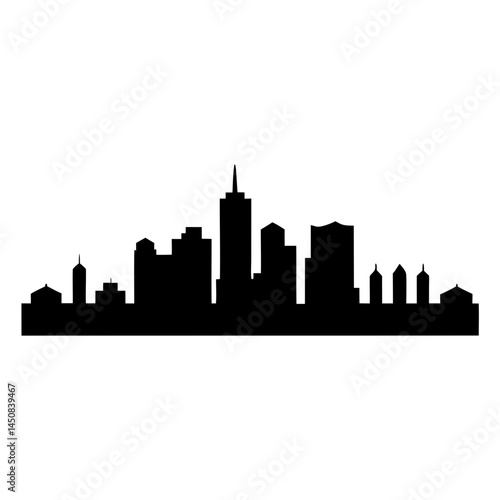 © Atique, Naklejka premium Detailed vector silhouette of a modern city skyline against a white background