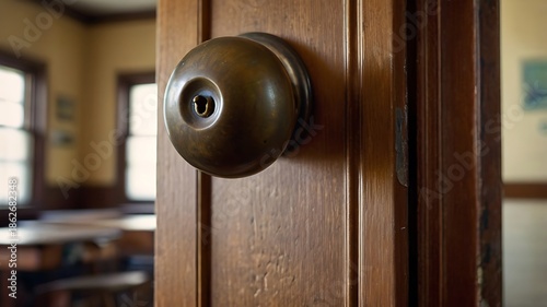 Obraz premium Detailed View Antique Doorknob Classroom Door