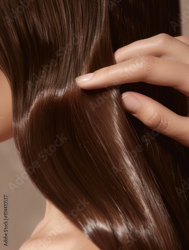 © Vesovic , Obraz premium Detailed view highlighting the texture and sheen of well-maintained, long brown hair, possibly from a haircare routine