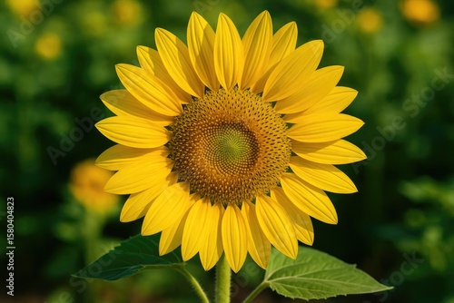 Fototapeta premium Detailed view of a bright yellow blossom in a garden setting
