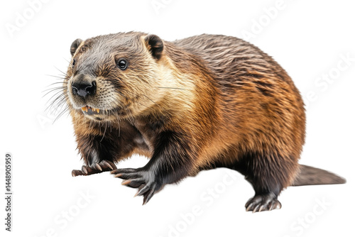 Fototapeta premium Detailed view of a cute and fluffy beaver with a transparent background,...