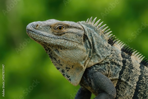 © TheWaterMeloonProjec, Obraz premium Detailed view of a green iguana's face
