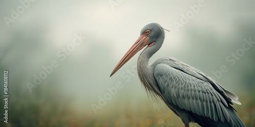 © AugmentArt, Obraz premium Detailed view of a grey shoebill stork with expansive wings against a natural background, highlighting bird conservation efforts