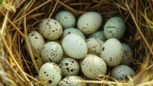 © ECLIVN, Obraz premium Detailed view of a kingfisher’s nest with smooth, white eggs