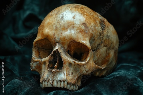 Obraz premium Detailed view of a natural skull on dark fabric backdrop