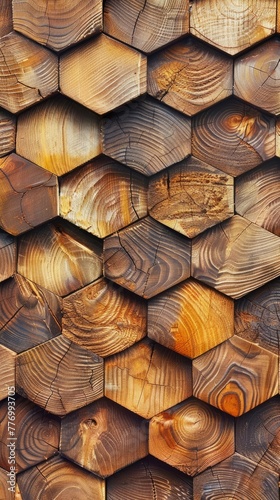 Obraz premium Detailed view of a wooden wall featuring cubes arranged in a fish scale pattern. Background, wallpaper.