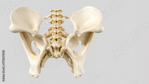 © Konstantin divelook, Naklejka premium Detailed view of human pelvis and spine anatomy displayed for educational purposes in a clean, bright environment