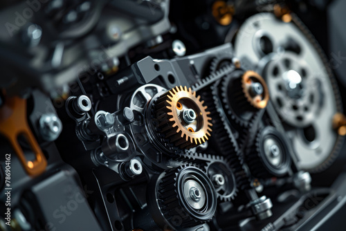Fototapeta premium Detailed view of interconnected gears and machinery parts, illustrating...