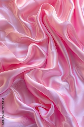 © Fotograf, Fototapeta premium Detailed view of pink satin fabric, suitable for fashion or textile designs