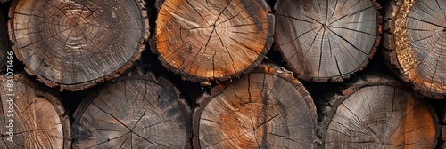 © StockUp, Naklejka premium Detailed view of tree rings and textures in a close-up of log ends, representing natural patterns and age