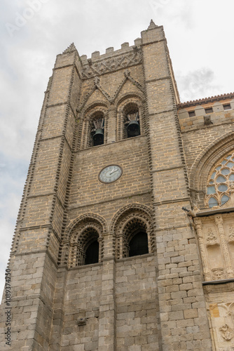 © Outsiderzone, Fototapeta premium Detailed View of Ávila Cathedral's Exterior and Surrounding Streets