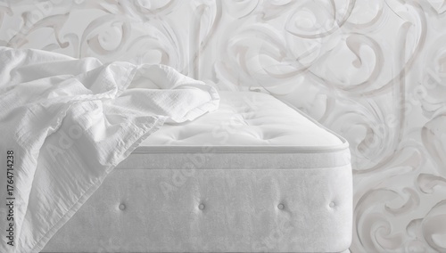 © AIArtistry, Fototapeta premium Detailed view of white mattress fabric texture
