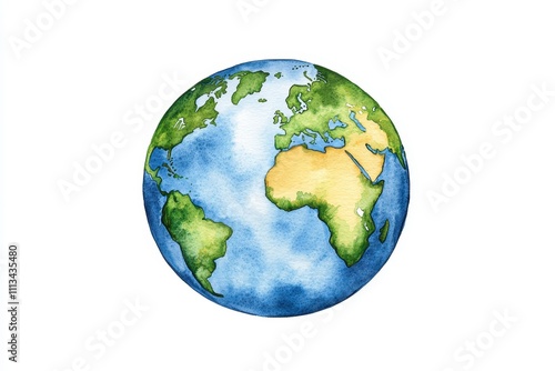 © Suryani, Naklejka premium Detailed Watercolor Illustration of a Blue Globe with Continents