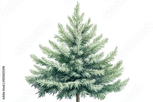 © Sukifli Dakheng, Obraz premium Detailed watercolor illustration of a pine tree