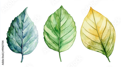 © Dreamphoto, Obraz premium Detailed watercolor leaves in a realistic style Water color on white background