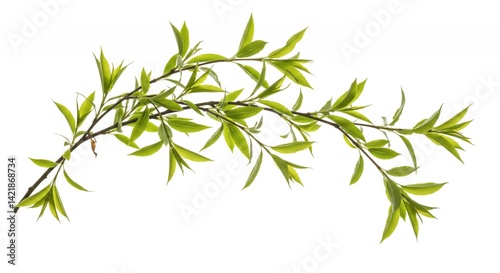 © avissarahmanita, Naklejka premium Detailed Willow Salix babylonica Leafy Branches and Silhouettes Isolated on White Background in Botanical Shot with Soft Lighting Featuring Vibrant Green and Golden Hues
